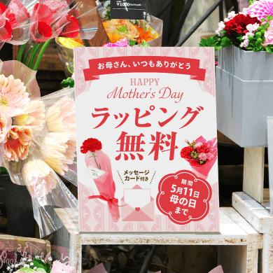 卓上パネルは、卓上メニュー表や受付 POP としてよく使用されます。テーブル上やレジ前などお客様の目に付きやすい場所に置くことができるので、サービスの紹介や商品 PR にもおすすめです。