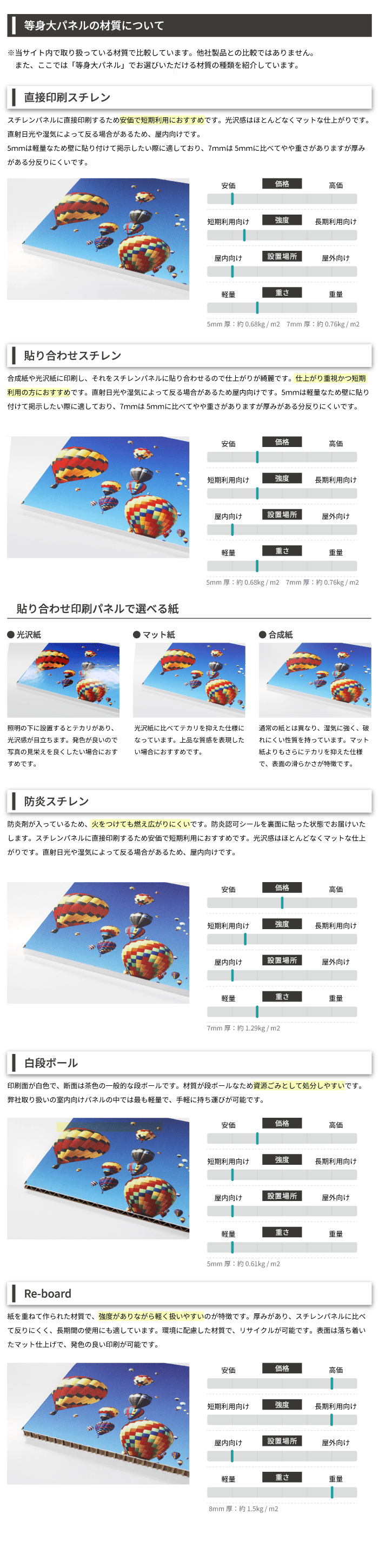等身大パネルの参考価格をご紹介します。 お選びいただく仕様によっては価格表と異なる金額になる場合があります。最終的な金額はご注文フォームにてご確認ください。