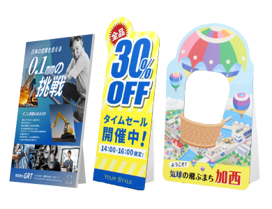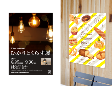 らくらくデザインを使用して作成したパネル・ポスターのデザイン例です。さまざまな素材を組み合わせることで、幅広い用途や目的にあわせたデザインが作れます。